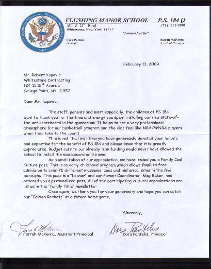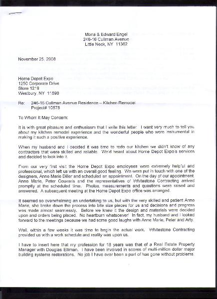 We knew that any renovation would be a daunting task but actually doing it and surviving it is quite a feat . Thank you for completing the project with us. Balancing the original design, the technical problems and the Co-op restrictions and most of all the estimated budget was quite a challenge and your cooperation and decisiveness and prompt response helped tremendously toward achieving our goal. The project was finished on time and the crew's behavior was professional. After completion your quick response to some unfinished business and minor details was most appreciated.
